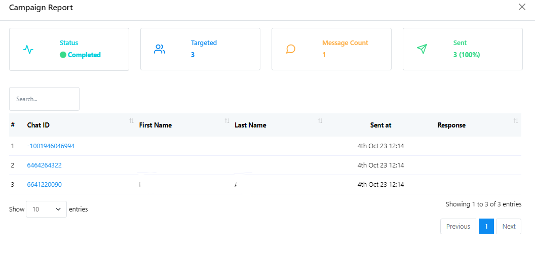 - You can check Status, Targeted number of subscribers, Message Count and Sent report here.