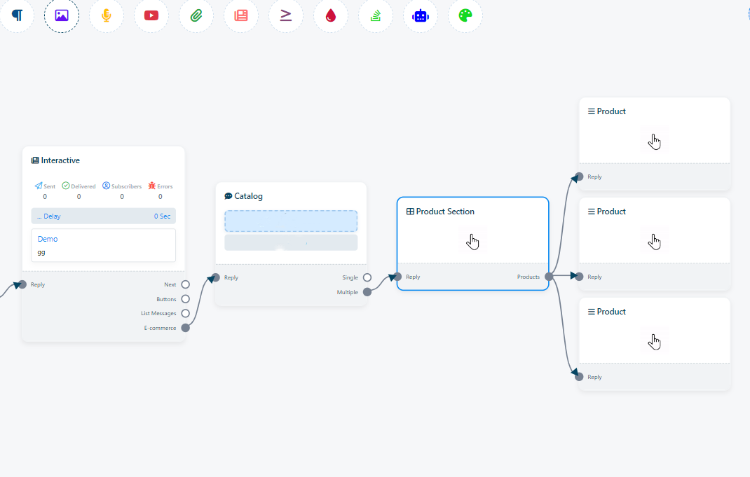 5. Once you have configured your ecommerce store within the flow builder, make sure to save your changes. Afterward, you can publish your chatbot with the ecommerce feature.